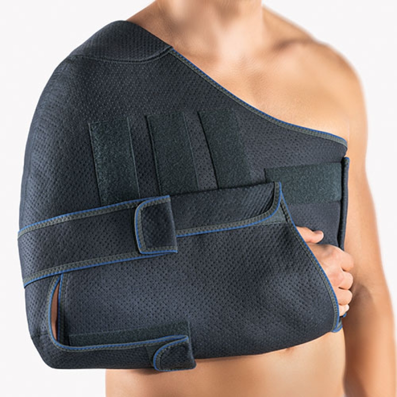 – Centură elastică cu sistem de închidere de tip velcro pentru imobilizarea sau poziţionarea individuală a braţului, respectiv a umărului.